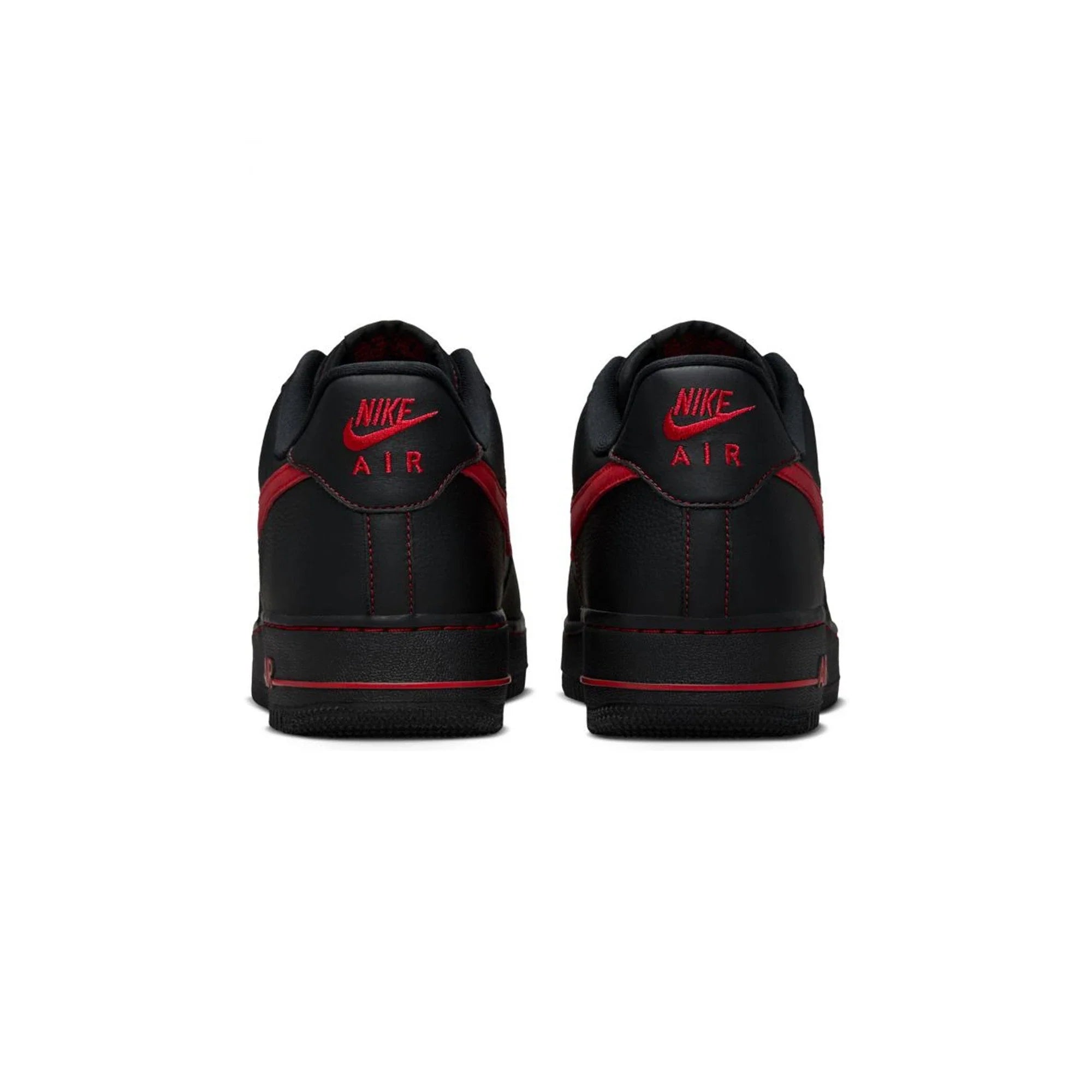 This iteration features a premium black leather base contrasted with striking red overlays on the mudguard, Swoosh, and heel, capturing the iconic "Bred" aesthetic. The white midsole houses Nike Air cushioning for all-day comfort, while the black rubber outsole ensures durability and traction. Subtle tonal branding on the tongue and heel completes the sleek, versatile look, making it a must-have for collectors and casual wearers alike.